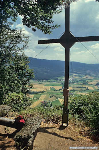Vom Rücken des Kaltenberges (die höchste Erhebung bleibt nördlich!) über die Südflanke mäßig steil abwärts zu einem von rechts einmündenden Forstweg (Weg 31 und 31a) und auf diesem in Südrichtung weiter zu einer Verzweigung. Auf Weg Nr. 31 im Wald nach rechts hinab in einen Sattel und jenseits steil empor zu der von dichtem Wald umgebenen Felsengruppe „Sphinx“ am Beginn des „Heiligen Bezirks“ und weiter zum felsigen Gipfel des Böndel, 922 m, mit Fernblick bis zu den Alpen. Auf Fußweg im dichten Wald nach Westen, dann über den Südwestrücken des Berges steil hinunter zu einer Verzweigung. Rechts auf Fußweg Nr. 31 (Pfeil „Stichweg zum Kaltenbergkreuz“) über einen Rücken, dann in Kehren abwärts, später nach rechts über einen Felsriegel und hinab zu dem auf einem Felsvorsprung stehenden Kaltenbergkreuz, 860 m. Tiefblick ins Yspertal.