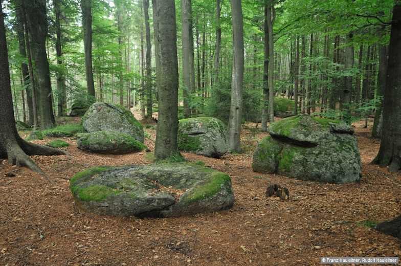 Auf dem breiten Höhenrücken des Kaltenbergs (970 m) wandern wir zum »Druidentreffpunkt«, zum »Äußeren und Inneren Steinkreis« sowie zur »Wohnhöhle«.Foto: Franz Hauleitner, Rudolf Hauleitner, Rother Bergverlag