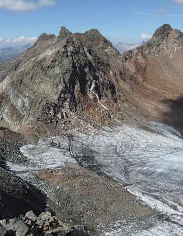 Vom Ost-Nordostgrat des Schönbichler Horns verabschieden wir uns in der Höhe von 2.763 m und gehen nach Südosten ins Garberkar hinunter. Dann schwenken wir nach links (gegen Norden) ab, und auf einer Moräne verzweigt sich die Abstiegsroute. Wer will, kann von dort der Berliner Hütte noch einen Besuch abstatten.