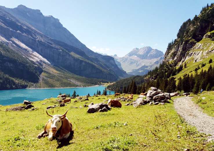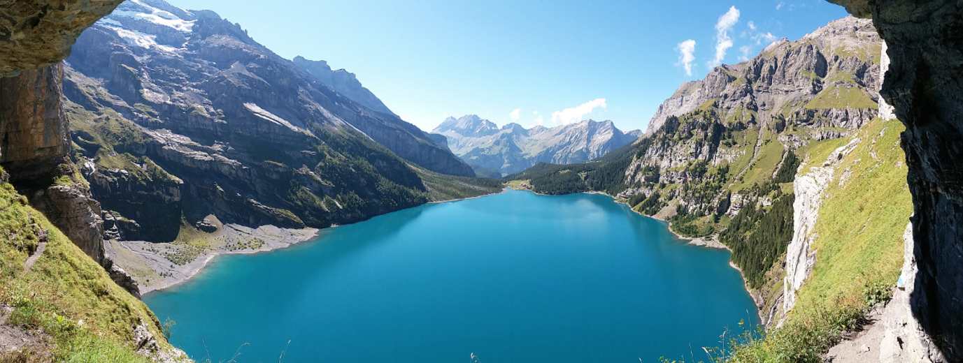 Die mittelschwere Wanderung führt von Kandersteg zum weltbekannten Oeschinensee (1.578 m) im Berner Oberland in der Schweiz. Der Oeschinensee gehört zum UNESCO-Welterbe und zählt zu den schönsten Bergseen der Alpen. Bis zum Oeschinensee wandert man entlang von Gletschern, Fels und See bis an an den Fuß der Blüemlisalp heran. Der weltbekannte Oeschinensee wird von kristallklarem Gletscherwasser gespeist, das stiebend und tosend in den 60 m tiefen Gebirgssee fällt.