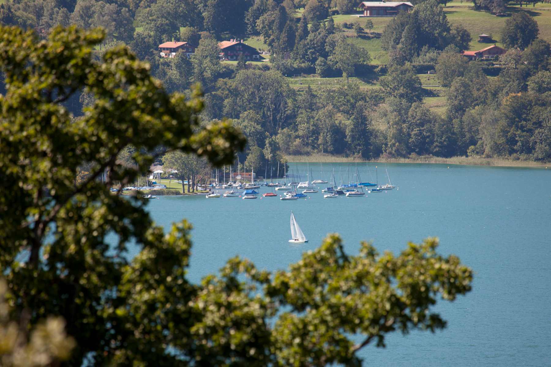 Nach 1 km zweigt der Weg von der schmalen Straße links ab und man marschiert in den Buchenwald hinein. Der relativ breite Steig führt nun immer rund 100 Hm über dem See entlang, es gibt mehrere Aussichtsbänke, von denen man das Geschehen am See bestens im Blick hat. Nach etwa 2 km am Steig folgt man der Beschilderung „Tegernseer Höhenweg nach Tegernsee“ und gelangt direkt zum Bahnhof des Ortes. Nun noch rund 250 m in südlicher Richtung auf der Bahnhofstraße weiter, eher man rechts in den Königin-Caroline-Weg abbiegt. Auf diesem Weg immer geradeaus weiter und später entlang der Prinz-Karl-Allee hinab bis zum Seeufer. Teilweise auf Holzstegen über dem See wandert man nun in südlicher Richtung auf der Uferpromenade bis zum Klosterbrauhaus Tegernsee (ca. 1:45 h ab Bhf. Gmund).