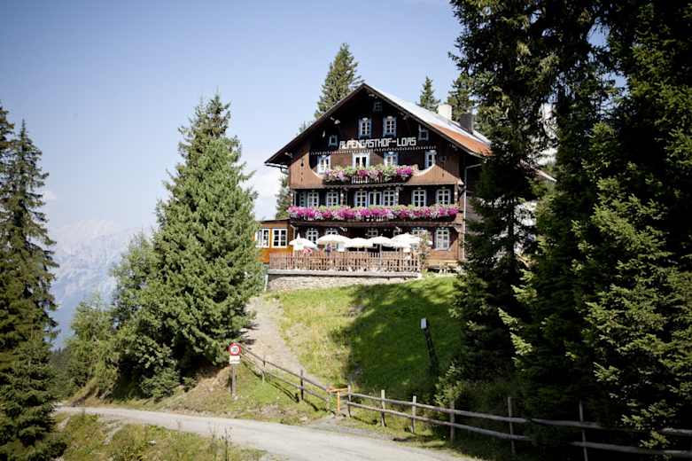 Von der Alm ein kurzes Stück hinab („Loassattel, Hochfügen“) und weiter auf und ab durch Latschen und Grünerlen dem Hang entlang. Der Steig führt weiter in einen lichten Wald hinein und oberhalb des Loassattels wieder ins offene Almgelände. Die letzten Meter zum Loassattel geht es am Pfad abwärts. Nun rechterhand am Fahrweg rund 400 m abwärts zum Alpengasthaus Loas (1 h ab Gartalm). Nach der Einkehr am selben Weg retour auf den Sattel und durch das Gatter weiter noch ein kurzes Stück ansteigend am Fahrweg in Richtung Hochfügen. Nun abwärts und über zwei Kehren in den Graben des Matschentalbachs und am Hang entlang nach Hochfügen. Die letzten Meter verlaufen parallel zur Hochfügenstraße, ehe man den Wintersportort erreicht (ca. 1:15 h ab Loassattel).