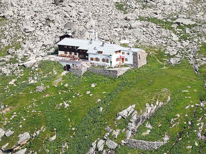 Leicht abwärts geht es zum Mittelbergjoch und danach stetig abwärts bis zur schön gelegenen Tübinger Hütte auf 2.191 m.