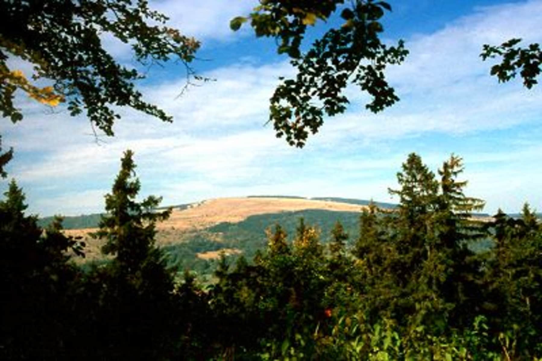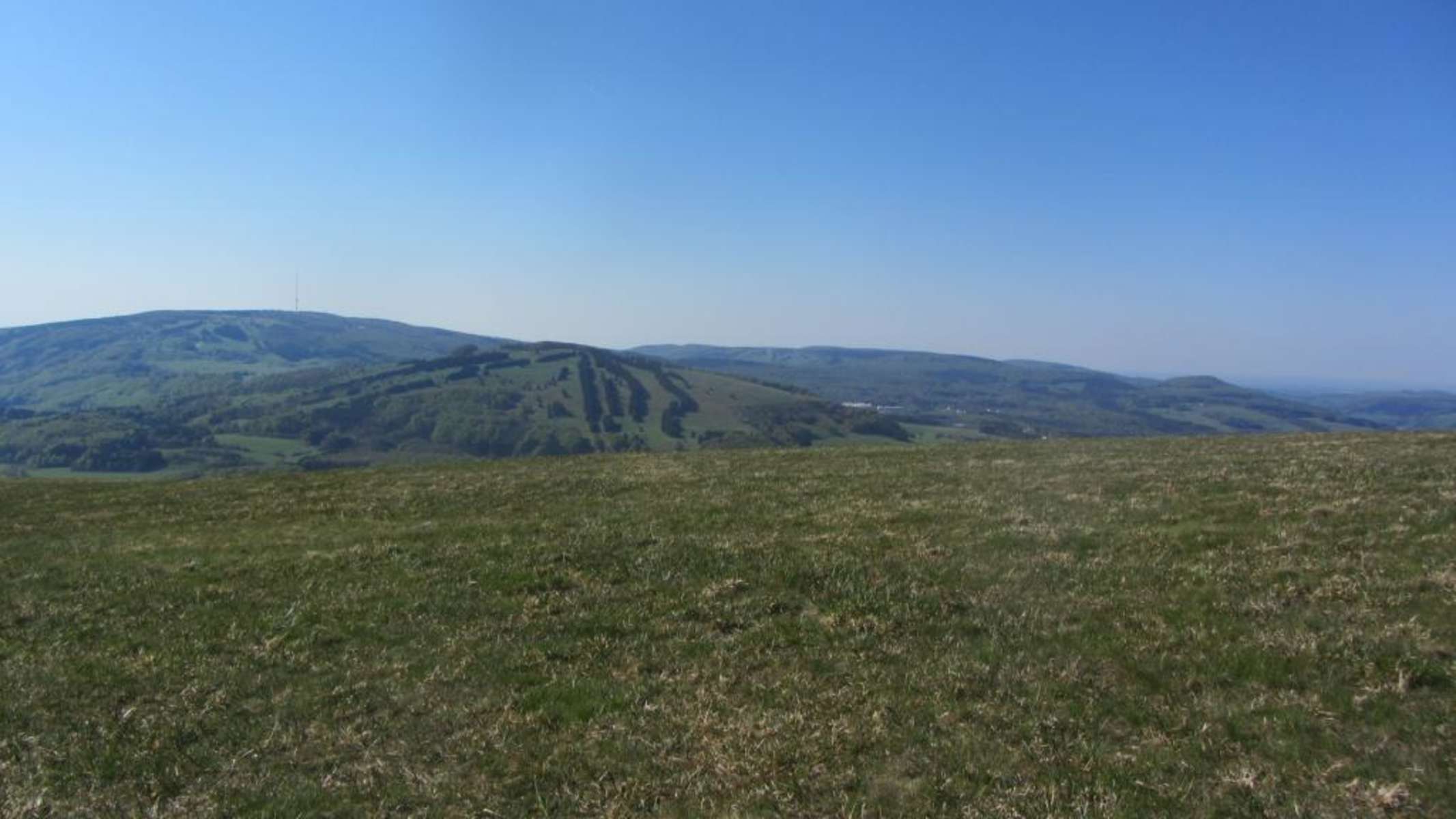 Rundwanderung von der Würzburger Bergbund Hütte am Himmeldunk (960 m): In grauer Vorzeit trug der Berg einmal den Namen „Hugimuododung“, woraus im Laufe der Zeit Himmeldunk wurde. Der Besuch lohnt sich vor allem für diejenigen, die wegen des Hochrhönfeelings nicht bis nach Hessen fahren wollen und die die Ruhe und den einzigartigen Panorama-Blick von den Gleichbergen über den Kreuz- und Arnsberg, ins Obere Sinntal bis hin zum Schachen genießen möchten. Lohnende Wanderung im bayerischen Rhön.