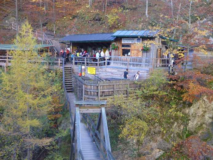 Nach ca. 2 Stunden Gehzeit ist das erste Rastziel erreicht, der Ötscherhias, eine kleine, gemütliche Jausenstation. Der Weg führt nun zum Teil schmal und etwas ausgesetzt weiter (an schmalen Passagen bitte besondere Vorsicht), passiert den Mirafall und kommt dann zur Abzweigung zum Vorderötscher Schutzhaus (888 m). Ab hier führt der recht malerische Greimelweg (Nr. 11a) in 30 Minuten zur Lichtung, wo das Ziel der Etappe liegt.