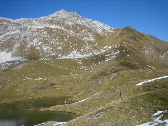 Weiter geht es an einem kleinen Bergsee vorbei, der Weg führt jetzt für ca. 200 Höhenmeter abwärts. Immer wieder müssen Bäche überquert werden, die im Frühsommer oftmals noch Schnee aufweisen. Hier besondere Vorsicht. Etwa 1 Stunde vom Haselloch entfernt kommt man auf einen weitläufigen Almboden. Der Tauernhöhenweg Nr. 702 zieht von der Weitlahnerscharte herunter. Diesen Weg nun weiter in Richtung Franz-Fischer-Hütte folgen. Kurz vor der Franz-Fischer-Hütte (2.020 m) wird noch der Zaunersee passiert, der kurz unterhalb der Hütte liegt.