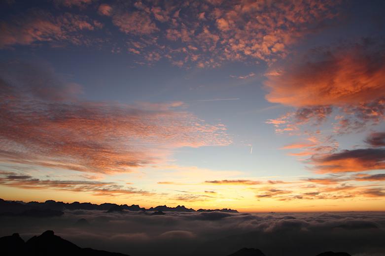 Abenddämmerung über den Wolken auf der Hochiss mit Blick in Richtung Karwendelberge (Oktober, 18.55 Uhr, 1/20 sec, f11, F17 mm). Foto: Joachim Simon