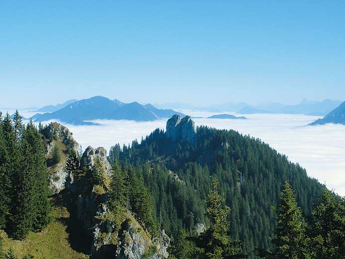 Das Ettaler Manndl (1.633 m) kann hingegen nur über einen steilen Anstieg, der mit Ketten gesichert ist, erstiegen werden. Schwindelfreiheit und Trittsicherheit sind hier gefragt.