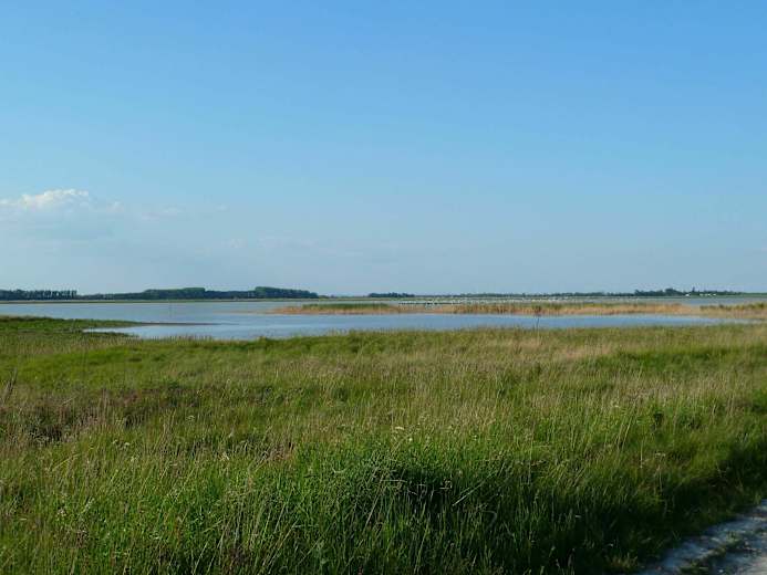 Der Weg führt direkt am Südufer entlang. Überall sieht man die Wattvögel, die im weichen Sand nach Essbarem suchen - und wer im Mai hier ist - der wird sich an den jungen Graugänsen kaum satt sehen können.