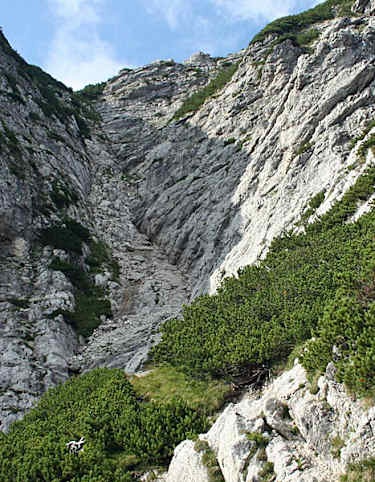 Vom Wanderparkplatz Ullachtal folgt man dem Naturlehrpfad (Nr. 10) Richtung Norden, überquert den Birnbach und zweigt nach 300 m rechts ab. Ab hier über Wiesen auf Steig Nr. 40 steil bergauf, bei der Abzweigung Stoffenalm links hinauf weiter und in den Wald hinein. Bei den Abzweigungen zum Birnbachloch hält man sich beide Male rechts und steigt dann in vielen Serpentinen hinauf über die Baumgrenze in die Latschenzone. Rechter Hand zieht ein Graben hinauf bis zur Felszone.