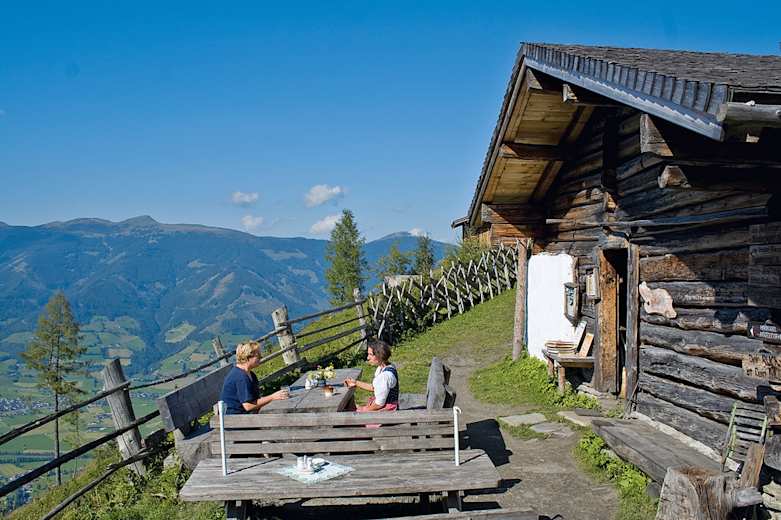 Oben am Grat schlängelt sich der Alexander-Enzinger-Weg zur Krefelder Hütte am Fuße des Kitzsteinhorns, der auch gleichzeitig Teil des Arnoweges ist. Doch wer einmal auf den uralten Bänken und an den ebenso alten Tischen gesessen ist, den Duft von Käse, Kräutern und Kühen eingeatmet hat, wo die einzige Geräuschkulisse vom Gesumme der Insekten in den Almwiesen, dem Rauschen der Gebirgsbäche und den Kuhglocken stammt, der möchte eigentlich gar nicht mehr weiter. Und wenn doch, dann kommt man wieder. Auch wegen des herrlichen Ausblicks, um den man die Kühe beneiden muss. Almidylle pur.