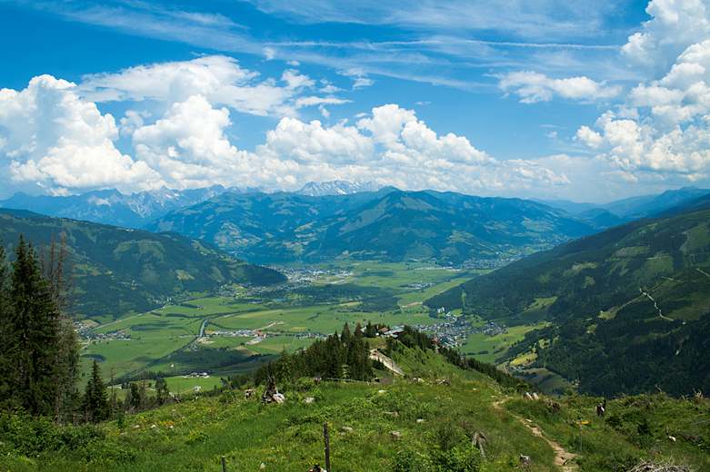 Von der Bergstation der Maiskogelseilbahn (1.540 m) wandert man direkt an der Maiskogelalm vorbei, unter einer kleinen Brücke hindurch gleich links auf dem Spazierweg zum Glocknerblick (Weg Nr. 27) in einer halben Stunde hinauf zur gleichnamigen Jausenstation (1.659 m). Seit dem Föhnsturm 2005 bietet sich dort ein herrlicher 270-Grad-Blick auf die Kitzbüheler Alpen, das Steinerne Meer, die Dientner Berge und die Hohen Tauern. Imbachhorn, Krapfbachkopf, Hoher Tenn und Großes Wiesbachhorn, Kitzsteinhorn und Großglockner dominieren das Panorama.