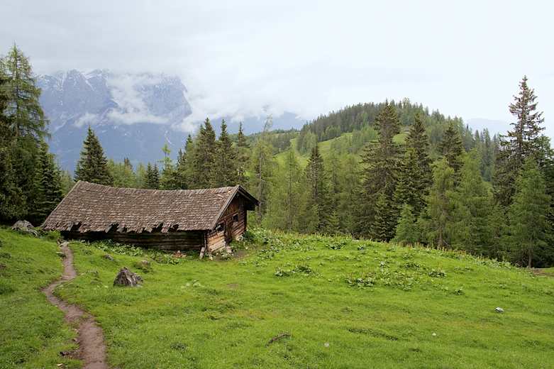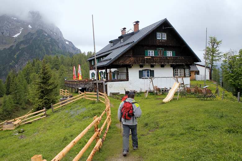 Ab hier sieht man bereits die Ostpreußenhütte (1.630 m), die man, fast eben, in wenigen Minuten erreicht.