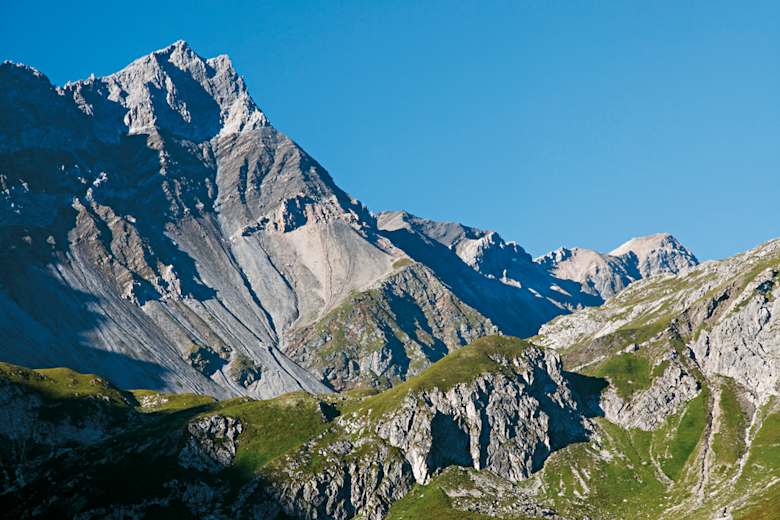 An diesem Punkt ostwärts ins Hochtal hinunter, wobei sich der Bergweg an die Südflanke des Parpaner Weisshorns schmiegt, bevor er sanft Richtung Älplisee ausläuft.