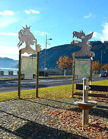 Wenn wir nun rechts abwärtsgehen, kommen wir zur Bahnlinie. Wir queren den Gießenbach und wenden uns nach links. Bei der Gießenbachmühle (mit Mühlrad) beginnt der Weg in die Stillensteinklamm.