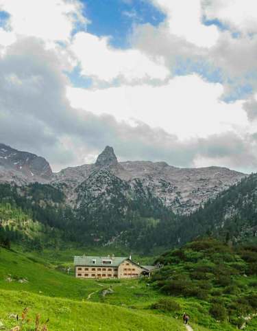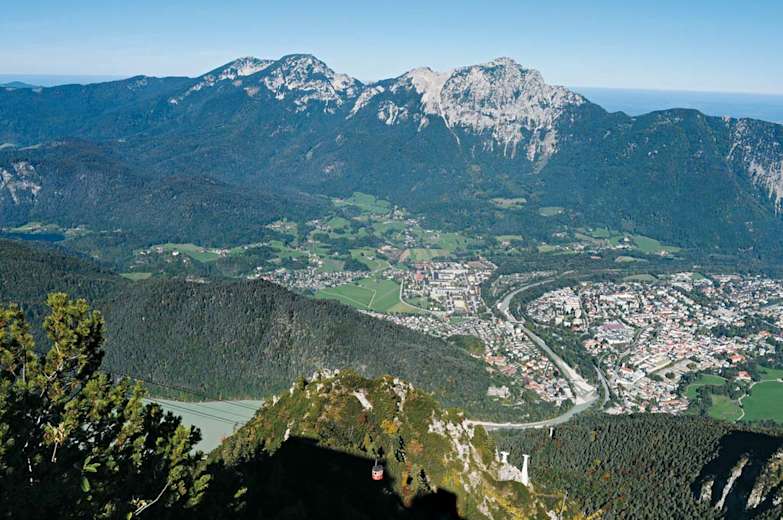 Rechts haltend führen einige Serpentinen hinunter zur Almhütte Schlegelmulde, die nach dem langen Anstieg durch den Alpgarten eine willkommene Einkehr bietet. Auf dem kurzen Schlussstück zur Bergstation hat man die Wahl zwischen breiter Promenade und dem schmalen, aber leichten „Alpinpfad“, von dem aus noch ein kurzer Abstecher auf den Predigtstuhl-Gipfel möglich ist.