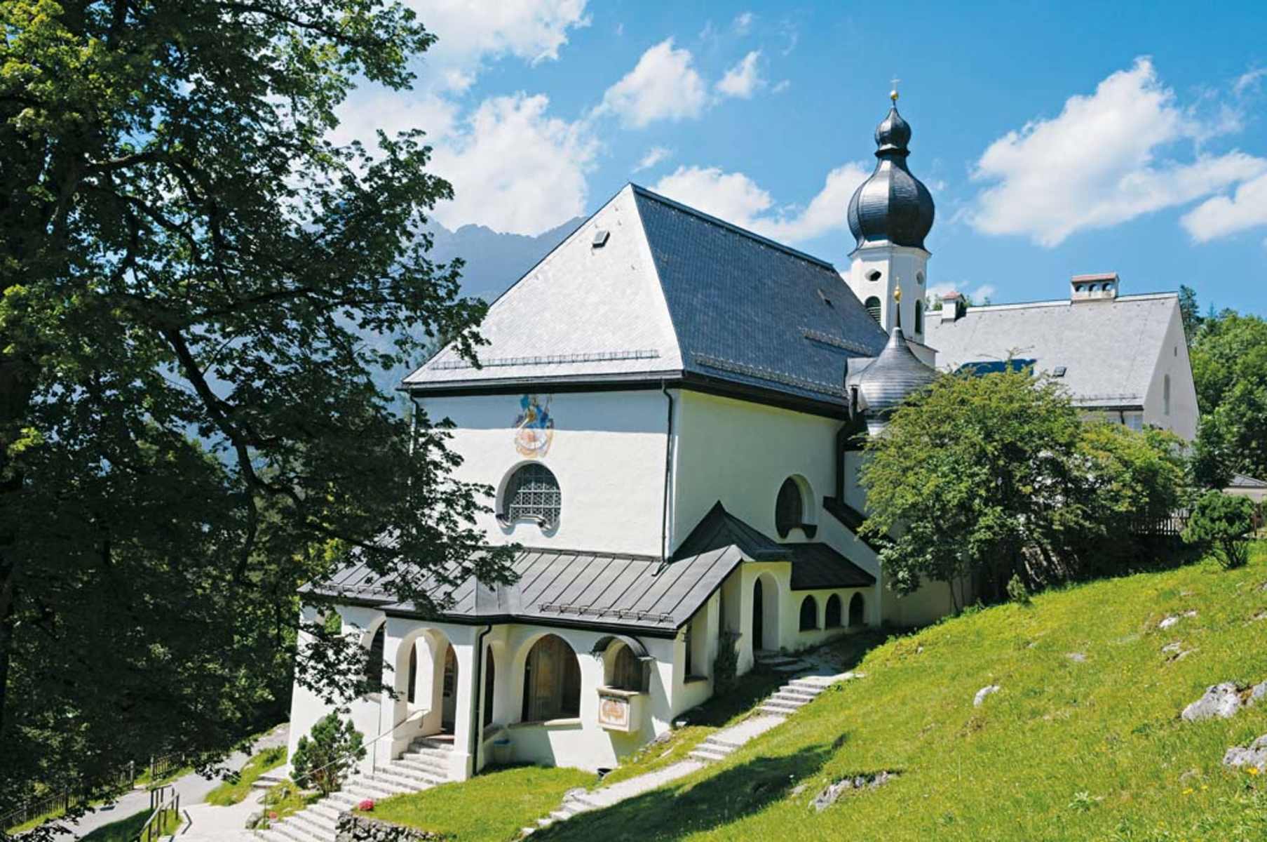 Sonnige Lage: das Wankhaus Foto: Stefan Herbke Unbedingt lohnend: der Abstecher zum Farchanter Kreuz Foto: Stefan Herbke Von der Eckenhütte genießt man einen Traumblick auf Alp- und Zugspitze Foto: Stefan Herbke Die Wallfahrtskirche St. Anton oberhalb von Garmisch-Partenkirchen Foto: Stefan Herbke Bildergalerie (4)