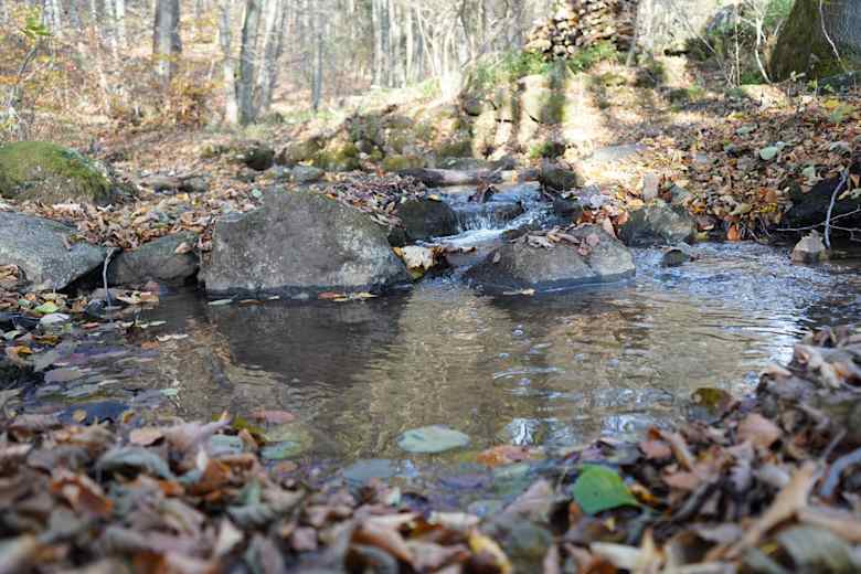 Zwischen uralten Bäumen entdeckt man unterwegs offene Basaltblockhalden, die vom früheren Vulkanismus in der Rhön zeugen.