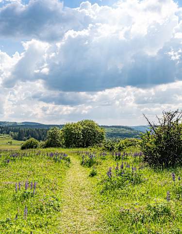 Rundwanderung am Hilderser: Im mittleren Ulstertal gelegen, verbindet diese sehr abwechslungsreiche Tour den unbewaldeten Gipfel des Buchschirmberges mit dem eindrucksvollen Battenstein und der Ruine der Auersburg mit ihrem Aussichtsturm. Diese lohnende Wanderung in der Rhön trägt das Deutsche Wandersiegel Premiumweg.