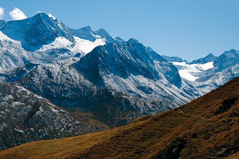 Die letzten zwei Stunden bewegt man sich nahezu hangparallel zwischen 2.200 und 2.300 Meter Höhe und quert dabei weiterhin recht steile grasige oder schrofige Flanken.