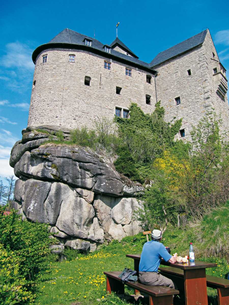 Das Naturschutzgebiet Waldnaabtal und der Falkensteiner Burgfelsen in Bayern führen uns Gesteinsformationen der nördlichen Oberpfalz vor Augen: Wie ein Haufen gestapelter Brotlaibe ragt der unter den 100 schönsten Geotopen Bayerns gelistete Burgfelsen auf – Wollsackverwitterung nennen das die Geologen.