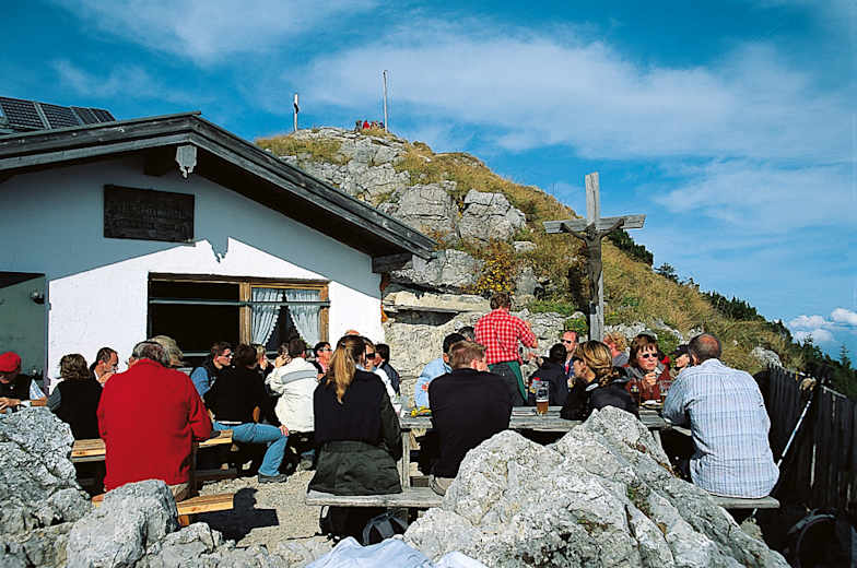 Einkehrmöglichkeit bietet die Heimgartenhütte kurz unter dem Gipfel des Heimgartens.