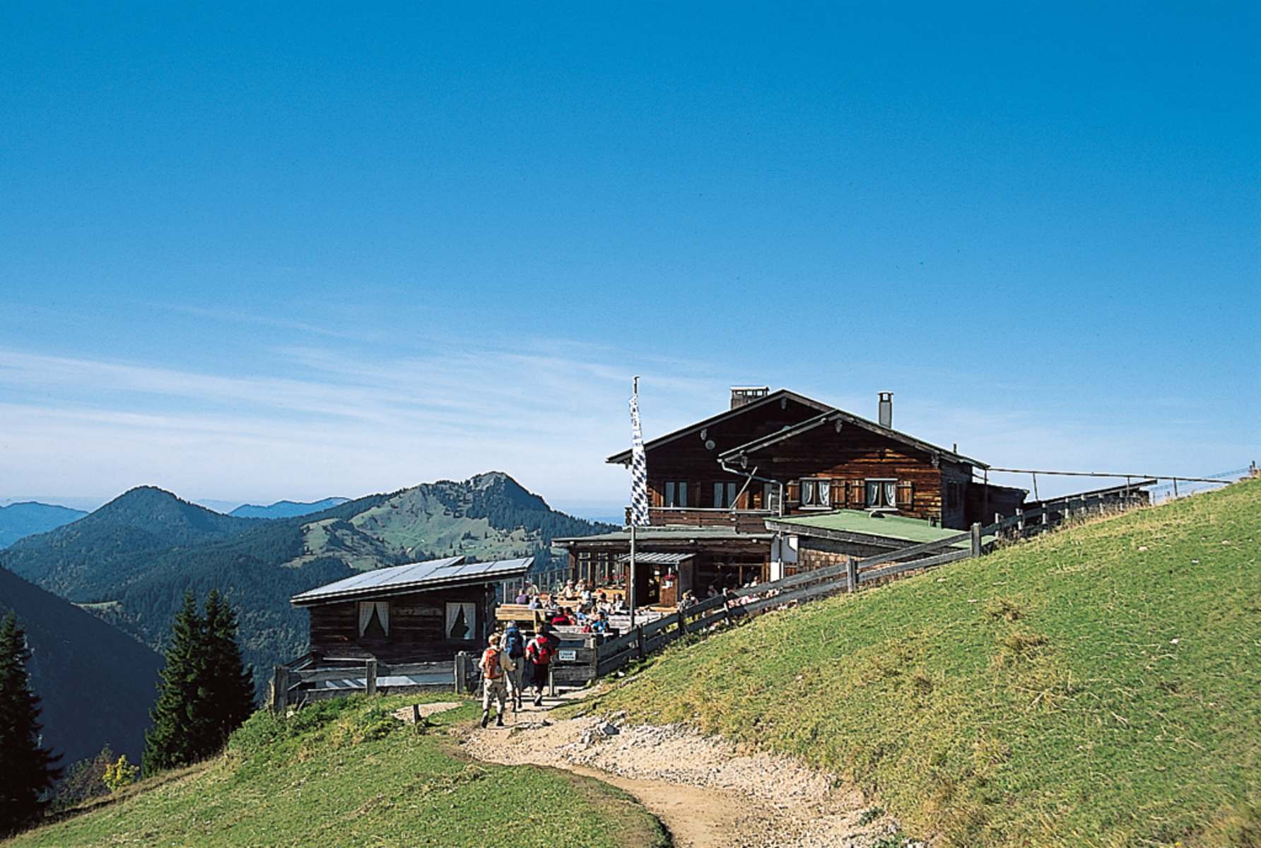Im Sommer stehen verschiedene Routen zur Auswahl. Wir wählen den vergleichsweise wenig begangenen Aufstieg von Kreuth in Bayern, der zunächst durch lichte Mischwälder, später über sonnige Almwiesen mit immer umfassenderer Aussicht zum Gipfel führt.