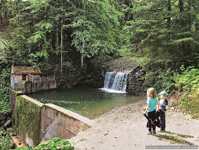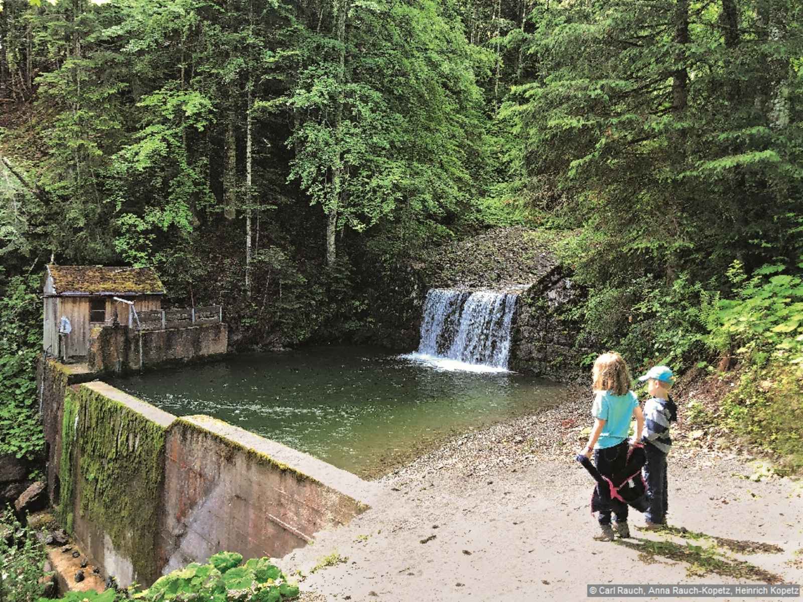Das Staubecken des Winterhöllbachs ist ein kühlender Zwischenstopp für Jung und Alt. Foto: Carl Rauch, Anna Rauch-Kopetz, Heinrich Kopetz, Bergverlag Rother GmbH
