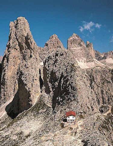 Die hier beschriebene Tour führt vom Falzaregopass am reizvollen Lago Limides vorbei zu der am Gipfel des Monte Nuvolau stehenden Hütte.