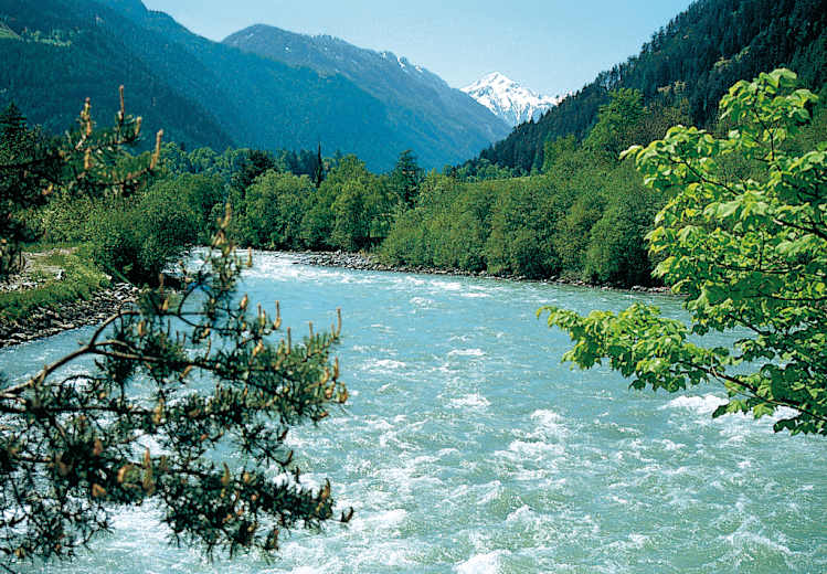 Der instand gehaltene Wanderpfad windet sich teils über Holzstufen mit Tiefblicken auf den grünen Inn anstrengend in Kehren über den steilen Waldhang empor. An ausgesetzten Stellen ist er mit Geländern gesichert. Wieder am Fluss führt uns ein Wirtschaftsweg über Wiesen nach Untertösens, wo wir die vom Anstieg her bekannte Brücke zurück nach Tösens nehmen.