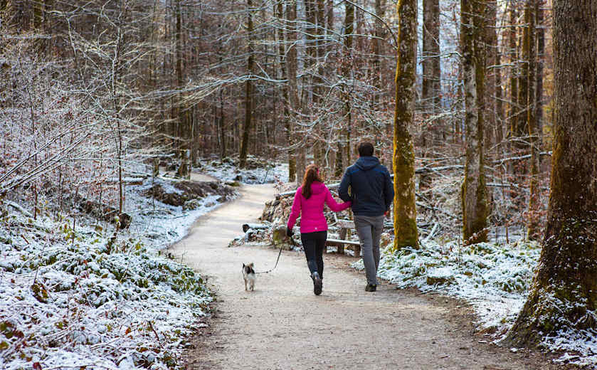 Bei der Wanderung durch den Zauberwald zum Hintersee kann man gleich drei Highlights der Ramsau in Oberbayern erleben. Am Beginn wandert man an der Pfarrkirche St. Sebastian vorbei, dann weiter durch den wildromantischen Zauberwald bis hin zum Hintersee. Auf der knapp zehn Kilometer langen Rundtour mit nur 225 Hm kann man den Ausblick auf die Berchtesgadener Alpen genießen und sich später mit einem Einkehrschwung belohnen.