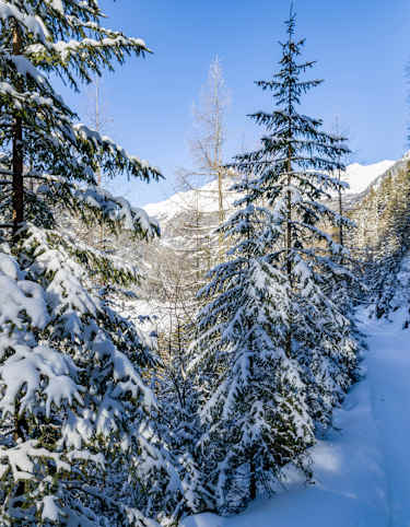 Je nach Schneeverhältnissen kann man zum Aussichtsturm bei der schönen Aussicht oder über den Herrenweg nach Obladis weiterwandern.