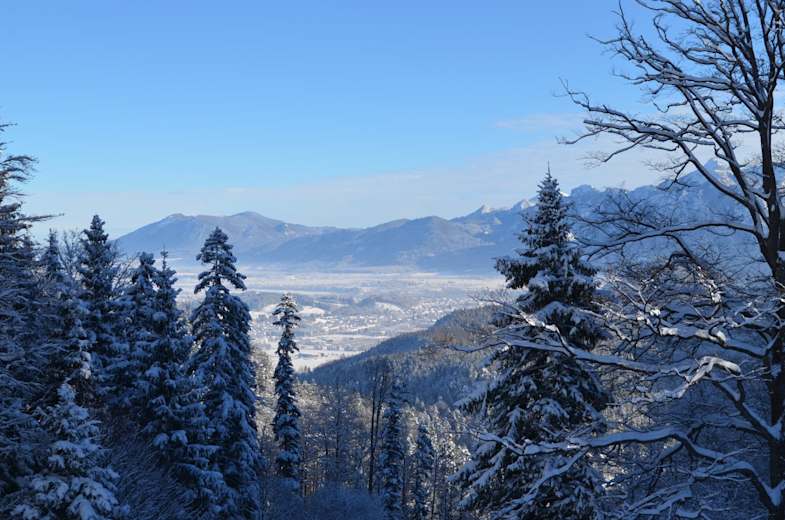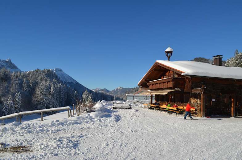 Eine mittelschwere Winterwanderung durch die prächtige Schneelandschaft in der Naturparkregion Reutte führt auf die Salober Alm (1.150 m). Man marschiert am Ufer des Alatsees, um den sich viele Mythen und Sagen ranken, entlang und gelangt dann zur Alm. Von dort bietet sich ein großartiger Blick auf die Allgäuer Alpen mit den Königsschlössern Neuschwanstein und Neuenschwangau.
