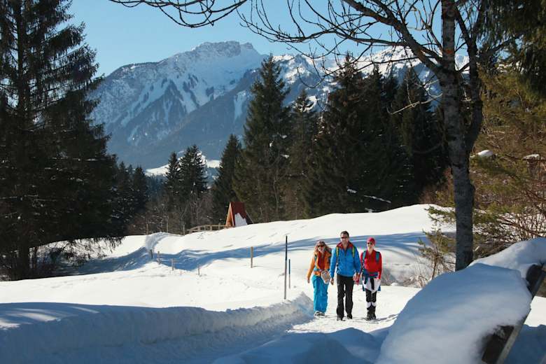 Nur wenige Minuten vom Ortszentrum entfernt marschiert man durch die wunderschöne Winterlandschaft und so manches Postkartenmotiv mit den urigen Holzstadeln und der idyllischen Gebirsglandschaft als Kulisse.