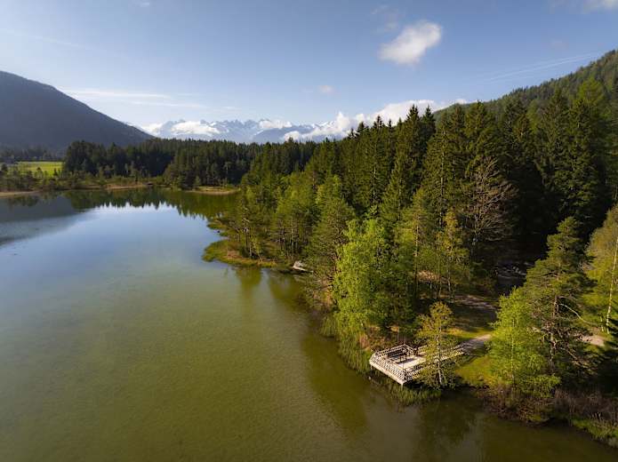 Dieser Weg verläuft rund um den Seefelder Wildsee und präsentiert dem Wanderer allerlei Wissenswertes zur Entwicklung dieser einzigartigen Landschaft. Der Ausgangspunkt des Themenweges liegt südlich vom Hotel Seespitz**** Superior. Von dort wandern Sie Richtung Süden zum Reither Moor. Folgen Sie dem Rundweg, der Sie schließlich wieder zum Ausgangspunkt führt.