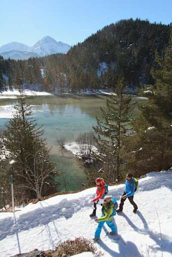 Auf einem Steig geht es vom Parkplatz am idyllischen Urisee hinab in den Ortsteil Archbach. Nun folgt man dem weiß geräumten Panoramaweg gen Westen. Der Name ist kein Zufall, da die Ausblicke auf die nahen Berge wunderschön sind. Verweilen und genießen heisst es in der Auenlandschaft des Hüttenmühlsees mit den vielen verzweigten Wasserarmen und einer lebhaften Vogelwelt. Am Ortsteingang der Archbach-Siedlung steht die Pestkapelle und erinnert an längst vergangene Zeiten. Auf dem geräumten Weg geht es nun immer entlang des Archbachs bis zur Brücke und zuletzt das kurze Stück hinauf, zurück zum Urisee.
