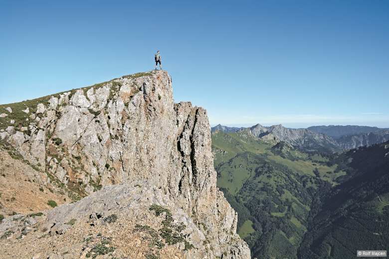 Felsvorsprung wenige Meter gegenüber dem Gößeck-Gipfel mit Blick zum Kaiserschild. Foto: Rolf Majcen, Bergverlag Rother GmbH