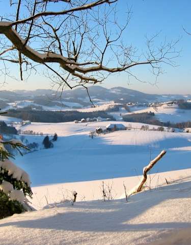 Kurze und gemütliche Winterwanderung mit Ausgangspunkt in Klaffer am Hochficht. Entlang kaum befahrenen Straßen und Feldwegen schlängelt sich diese Rundtour über die sanften Hügel des oberösterreichischen Mühlviertels und des Böhmerwaldes. Man gelangt nach etwa einer Stunde wieder zurück zum Ausgangsort.