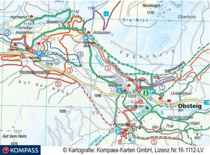 Der Startpunkt ist das Infobüro in Obsteig. Zuerst wandert man den Sturlweg entlang und über Arzkasten nach Weisland. Von dort geht es dann zuerst in nördlicher und dann in westlicher Richtung weiter nach Aschland. Anschließend geht man auf dem selben Weg bis nach Weisland zurück und in westlicher Richtung über Holzleiten und dem Lärchenwiesenweg weiter nach Mooswald von wo aus man zum Ausgangspunkt in Obsteig gelangt.