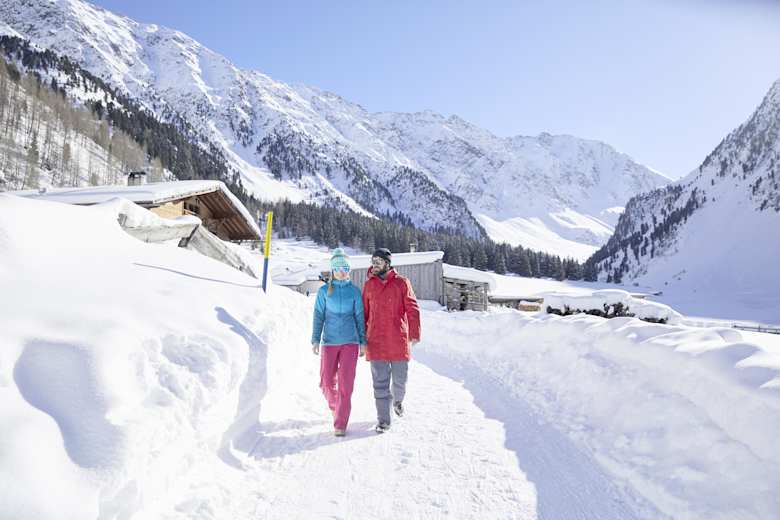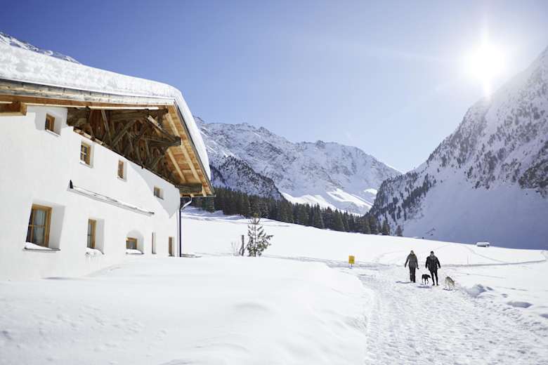Die leichte Winterwanderung in den Tiroler Stubaier Alpen führt vom Bergsteigerdorf St. Sigmund im Sellrain in 45 min zur Gleirschalm. Dieser familienfreundliche Weg zeichnet sich durch die herrliche Tiroler Bergidylle aus.
