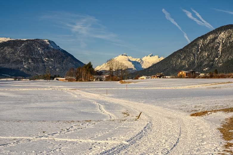Die leichte Winterwanderung im Tiroler Wettersteingebirge und der Mieminger Kette führt in 2,5 Stunden von Obermieming über den Gerhardhof zurück zum Ausgangspunkt. Die schöne Rundstrecke zeichnet sich durch ihre Bergidylle aus.