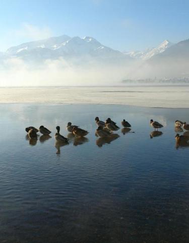 Einfache Winterwanderung in der Glocknergruppe in der Region Zell am See-Kaprun in Salzburg: Auf dieser Tour geht es in einer Schleife entlang der Golfplatzloipe durch die herrliche Winterlandschaft von Zellermoos. Dabei sind weder viele Höhenmeter noch weite Distanzen zu bewältigen. Der Genuss steht hier im Vordergrund.
