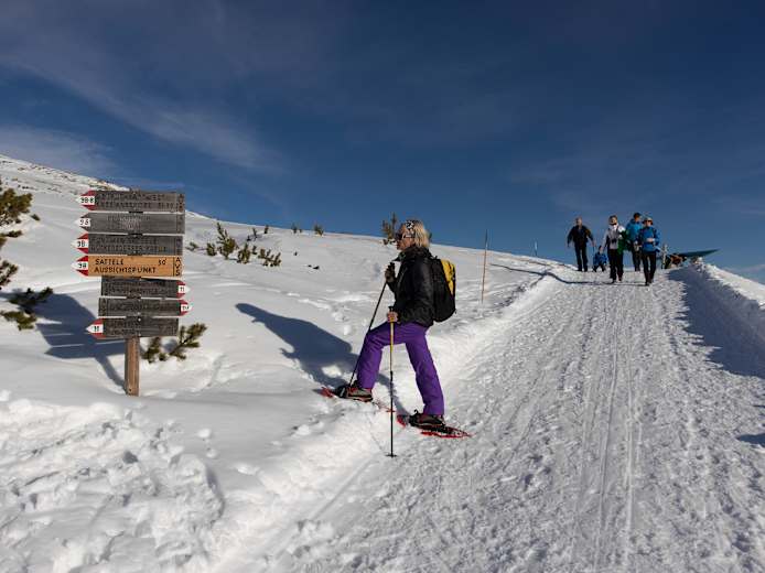 Die Winterwanderung beginnt an der Talstation der Bergbahn in Reinswald. Der präparierte Winterwanderweg führt zuerst neben der Piste bis zur Sunnolm.