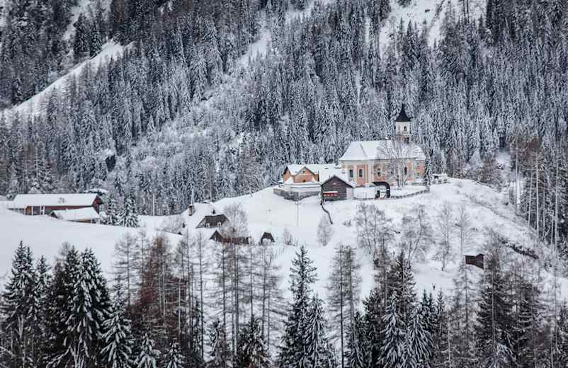 Sehr kurze und gemütliche Winterwanderung auf dem Bucheben Rundweg im Salzburger Raurisertal im Herzen des Nationalparks Hohe Tauern. Durch den idyllisch gelegenen Ort spaziert man hoch zur Pfarrkirche und kann von oben toll auf einige der Gipfel der Goldberggruppe blicken, bevor man auf selbem Weg zurück zum Ausgangspunkt spaziert.