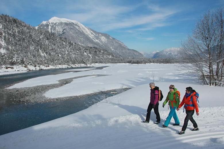 Diese erholsame Tour in der Auenlandschaft des Lechs, zwischen den Lechtaler- und Allgäuer Alpen, ist ein Wintervergnügen für die ganze Familie.