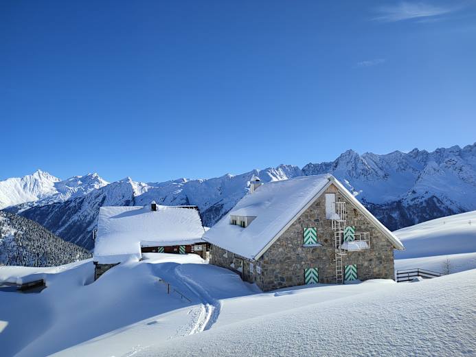 Da die Friedrichshafener Hütte im Winter nicht bewirtschaftet ist und auch sonst keine Einkehrmöglichkeiten am Weg liegen, sollte man eine Jause und Getränke mitnehmen.