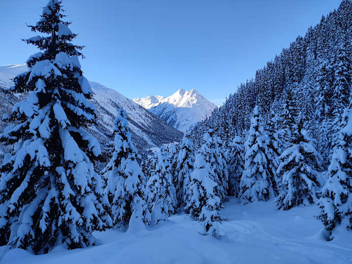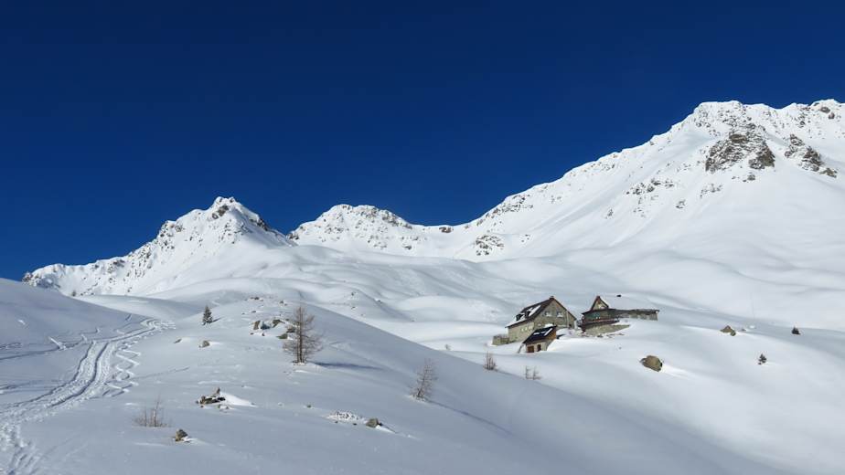 Die Tour beginnt am Parkplatz der Friedrichshafener Hütte, der sich im Ortsteil Valzur befindet. Ab hier folgt man dem breiten Winterwanderweg direkt bis hinauf zur Hütte. Die Steigung ist mäßig.