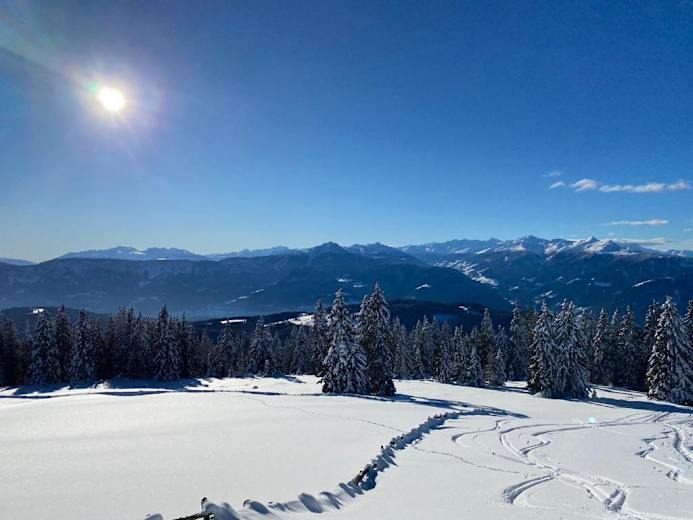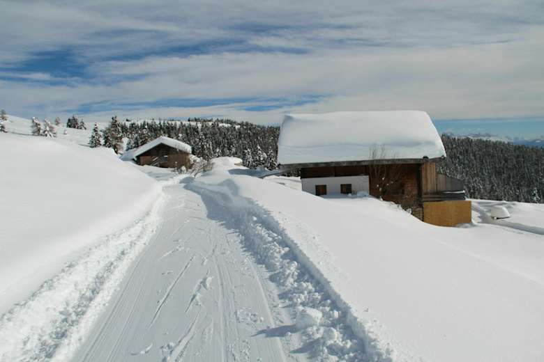 Dieser aussichtsreiche und beliebte Winterwanderweg führt von Hafling über die Wurzer Alm und Vöraner Alm hinauf zum Gipfel des Kreuzjoch (2.086 m). Nachdem man den fabelhaften 360° Panoramablick auf die Sarntaler und Alpen und die Südtiroler Dolomiten genossen hat, geht es vorbei an der Meraner Hütte (1.937 m) und der Zuegghütte hinab nach Falzeben. Eine insgesamt sehr ausdauernde Tour, die jedoch mit einer Einkehr in der Meraner Hütte oder der Zuegghütte ideal aufgeteilt werden kann.