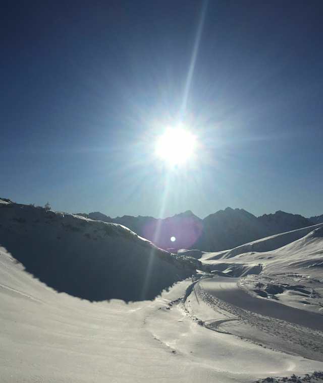Ausgangspunkt ist bei der Diasbahn der Bergbahnen Kappl und von dort legt man die ersten Höhenmeter gemütlich in der Gondel zurück. Oben angekommen geht es gleich durch einen Tunnel zum Sunny Mountain Restaurant.
