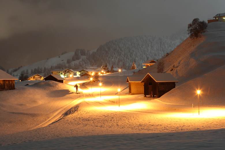 Dieser gebahnte Winterweg führt im ersten Stück etwas ansteigend auf eine Anhöhe und dann flach bis zum Endpunkt der Wanderung nach Fiss (1.438 m).